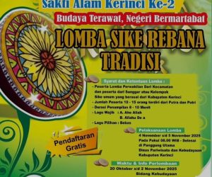 Pemerintah Kabupaten Kerinci melalui Dinas Pariwisata dan Kebudayaan mengundang grup dan kelompok seni untuk berpartisipasi dalam kegiatan lomba sike...